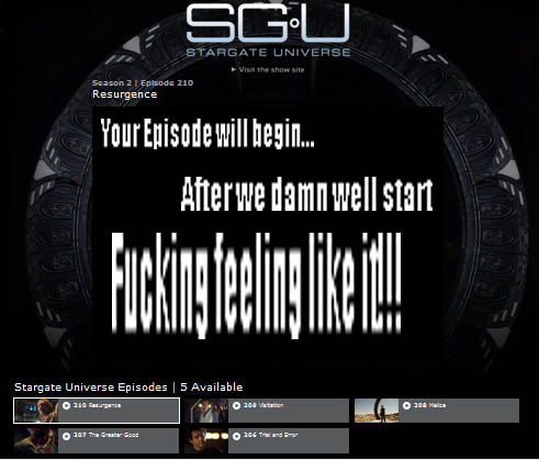 There are only two things preventing Caprica and Stargate: Universe from making the Top Ten list! 1) The stupid Sci-Fi Channel decided to hold back their streaming on SyFy.com for 30 days after their airing (half-way through their current seasons) and 2) Because a cross between Battlestar Galactica and thirtysomething and a Stargate version OF Battlestar Galactica really don't amount to being all that fucking good!