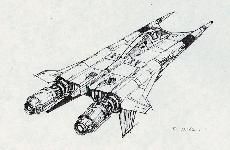 Ralph McQuarrie's first design for the Colonial Vipers in Battlestar Galactica went on to be used in as the Terran Starfighters in the TV Series Buck Rogers in the 25th Century.