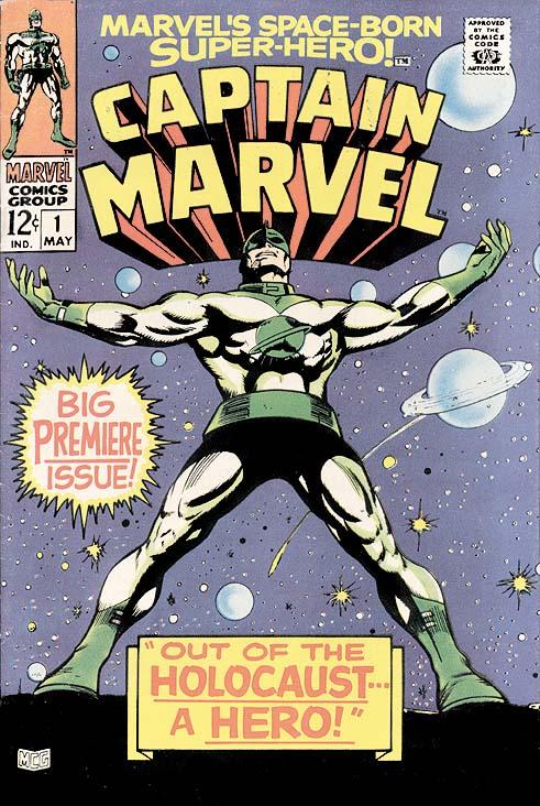 This was lucky for Marvel Comics, of course, if they even noticed. Legally holding the name "Marvel", the "BULLPEN's" own Stan Lee and collaborator Gene Colan believed they should naturally have a character named "Captain Marvel". The Alien Military officer they created and named Captain Mar-Vell fit the bill quite nicely upon his debut in December of 1967's Marvel Super-Heroes # 12. This Captain Marvel (followed by four(!) others to date at Marvel Comics), was never as recognized or as successful as the original, but did have one special power that Billy Batson's "Shazam" never dreamed of: A copyright on the name "Captain Marvel".