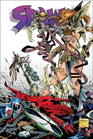 Gaiman successfully sued Todd McFarlane in 2002 and won an apparently sizeable amount of money in this suit. It has been argued by McFarlane supporters that the entire suit and disagreement is baseless as "Medieval Spawn", is really just "Spawn" in armor (he is referred to in the story only as "Spawn"), and that Angela is nothing but Spawn's exact opposite. No such supporting offer seems to successfully be made for Cogliostro. If I might editorialize for a bit here, McFarlane has always purported to be a champion of "Creator Rights" (after all, wasn't this the main driving force behind the "X-odus" and the creation of Image Comics?). Therefore, why should Gaiman be considered merely a worker for hire? Let's grant for one moment that the argument behind Medieval Spawn is accurate. Angela may well be Spawn's inversion, but she wasn't created by Todd McFarlane alone. Neither was Cogliostro, who has since become a major part of Spawn's story. Both characters required imagination, development and intelligence... in other words: Creativity. But back to Medieval Spawn. Let's look at Spawn himself. In essence, Spawn is a successful amalgam of Spider-Man and Batman, with enough supernatural elements thrown in to be "edgy". In McFarlane's early sketches, Spawn even sported a blue, Batman-like cape. How much different is that than putting armor on a new character based on Spawn? At the very least, Gaiman is the Co-Creator of these characters and deserves recompense as such, under the very rules by which Image was founded.