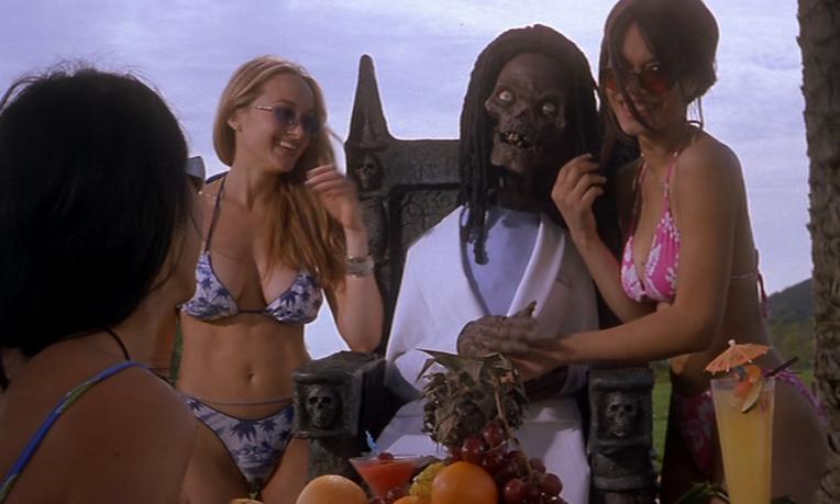 Speaking of things that didn't work out... let's talk a little about the third Tales from the Crypt movie, now known as Tales from the Crypt Presents: Ritual! There is almost a complete dearth of press out there concerning Tales from the Crypt Presents: Ritual. Most of what can be found is unofficial and unverifiable. However, the most prevailing rumor is that Ritual (then known as Revelation) was scrapped after the box office failure of Bordello of Blood (Demon Knight wasn't exactly a blockbuster either). The story continues that Miramax's Dimension Films imprint bought the rights to distribute this film (the first two being Universal Releases), removed all references to Tales from the Crypt and let it languish until 2006, when it was released on DVD with those references reinstated after all. While this flick did see very limited theatrical release in a few other countries in the meantime, aside from that fact, the rumors aren't so clear on the actual stepping stones between the sink holes in this film's undead life. For example, why would a film that flopped in 1996 prevent the release of a movie that was copyrighted in 2001? Slow Press? Did Universal start the ball rolling, then change their minds? Did "Tales from the Crypt Holdings" produce a the film with high hopes, only to spend time searching for a distributor later? Were there copyright issues as well as concern over audience interest? EC Comics (along with other William M. Gaines properties like MAD) is now owned by Time Warner, who also owns HBO (broadcaster and syndication company of the Tales from the Crypt Television Program) and their own comic company, DC Comics. However, Universal, not Warner Brothers, produced the first two films (of THIS series), the comic reprints were not done by DC and the basis for Ritual was not one of Gaines' EC Comics, but the 1943 RKO Radio Pictures Release I Walked with a Zombie! See how convoluted that is? Hence the need for some actual press on this. If you want to see me trying to unravel the legal rights of a cult figure, check out my article on Miracleman. Regardless of what the truth is, it's hard to believe that any film produced by (TFTC's actual Executive Producers) Richard Donner, David Giler, Walter Hill, Joel Silver and Robert Zemeckis would have all that much trouble getting a film distributed. Even if they were "Producers In Name Only" those are big names with more pull than a Black Hole's Gravity Well. But trouble Ritual did have. As hard as it is to believe, this film was released in the Philippines, Spain, Finland and even Norway before it gained DVD release in the USA. Hey, we beat Poland, I'll give you that (unlike in Soccer!!!). Incidentally, although released as Tales from the Crypt Presents: Ritual, and featuring our dreadlocked (or "DEADLOCKED") mascot "The Crypt Keeper" on the cover, the box also proudly states "From The Producers Of House Of Wax And Gothika"! What is this, another rights issue? How about "From The Producers Of The Actual Real Deal Holyfield Tales from the Crypt show", or even, "From The Dudes Who Brought You The Omen, Alien, Aliens, The Matrix And The Frighteners"? Sure Zemeckis and Silver produced House of Wax and Gothika, but do they really want people to know about that? What ever the reasons, the release wasn't prevented or postponed because of content. No, that's not to say it's a great movie, but it's most certainly better than a lot of what has passed for "Horror" these days. I mean, seriously, the WWE can get a horror movie starring one of its wrestlers released and Donner, Giler, Hill, Silver and Zemeckis had trouble? Are we on Bizarro World? The film, while maybe not quite up to the acclaim of I Walked with a Zombie, is actually not so bad. The Crypt Keeper is indeed in this film, introducing it as only he can. Although he's represented by a newer, somewhat less articulated puppet (the one also used in the Menu segments of the DVD releases of the TV Show), I can say that he is still voiced, as he always should be, by the great John Kassir (in a fun mock-Jamaican accent)! His brief (and strangely horny) intro is a must see for any Crypt fan. Like the series and previous movies, Ritual also features some recognizable faces as its stars. These include Jennifer Grey, Gabriel Casseus, Craig Sheffer, Daniel Lapaine, Stephen Tobolowsky, Nahtasha Budhi, Erick Avari, Tim Curry, Jessica Collins and, hey, Stand-Up Stand-Up's own Kristen Wilson... NAKED! Here I've written all the way down this page without even getting to the recap. Here you go: Dr. Alice Dodgson (Grey) looks to escape her troubled past by taking a medical commission (that doesn't require a current license) in Jamaica (poor girl). The job is to care for one of the heirs to the Claybourne Plantation, Wesley (Lapaine), who is said to believe he is a Zombie. His moderately sane brother Paul (Sheffer) is signing the paychecks and also checking out the scenery of the plantation while his afflicted sibling is indisposed. That scenery, I'm proud to say, includes the lovely islander Caro Lamb (Wilson, with a perfect Jamaican accent). Almost as soon as she arrives, strange things begin to happen around Alice, and she begins to have horrific visions of diabolical Voodoo practices being done to her. Most frighteningly, such visions are a symptom of Wesley's own illness, and it seems to be spreading. Through her friendship with Caro, Alice discovers that the island's "Obeah" (a malevolent export of voodoo) appears to be at work within the Claybourne household. Together they begin to deduce just who might be behind all this, who all is affected, and what this may, or may not have to do with Wesley's illness. Naturally, it's not easy with the horny, grabby hands of Tim Curry's Matthew Hope hanging around. As the noose tightens, Caro and Alice begin to doubt just who their friends are, and both seem to be having increasingly violent nightmares of murder and betrayal. The most ominous possibility is th